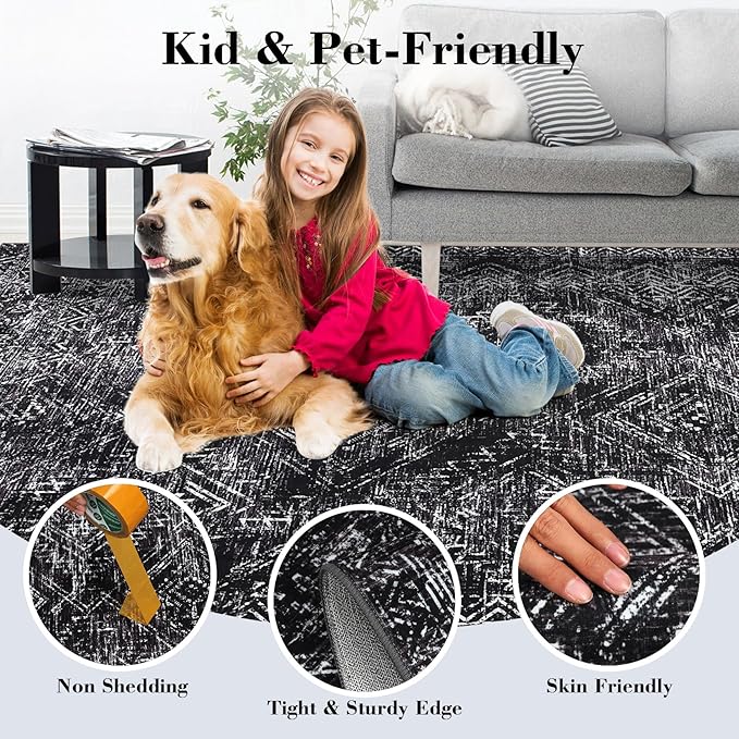 - [Machine Washable Convenience]: Designed for busy homes, this washable distressed indoor area rug is easy to care forโjust toss it in the washing machine for effortless cleaning and long-lasting style