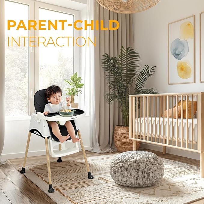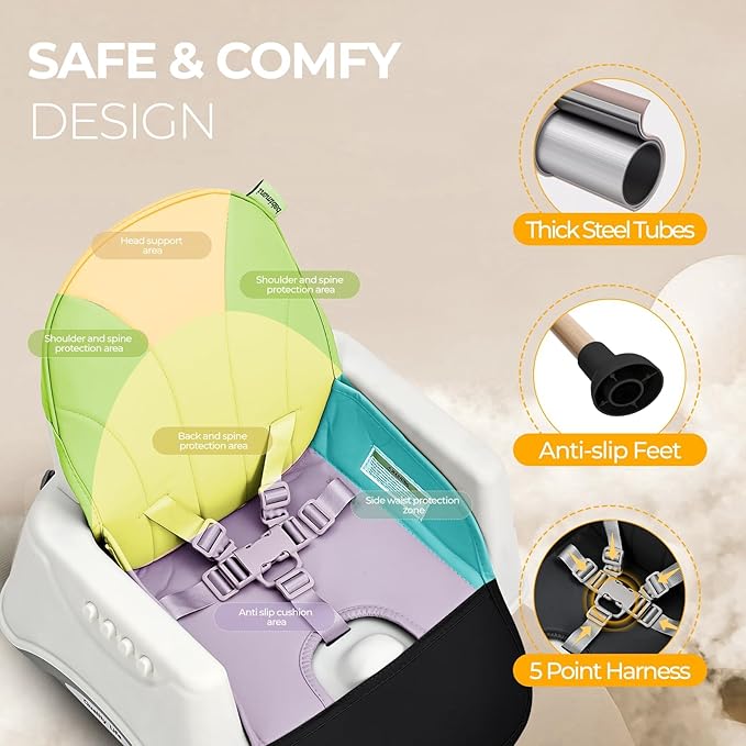 - Multiple Safety Protections: Sturdy steel tubes and a golden triangle design prevent tipping. The adjustable 5 point harness high chair ensures your babyโs safety, making this highchair a top choice for parents.