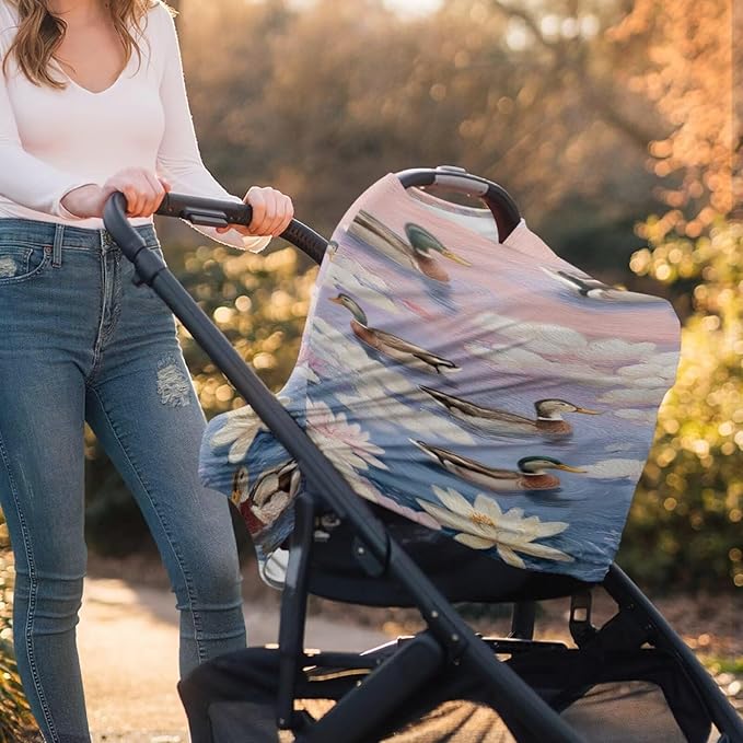 Binienty Baby Car Seat Cover - Lotus Duck Animal Print Multi-Use Car Seat Canopy Carrier Cover for Baby Boys Girls Shower Gifts